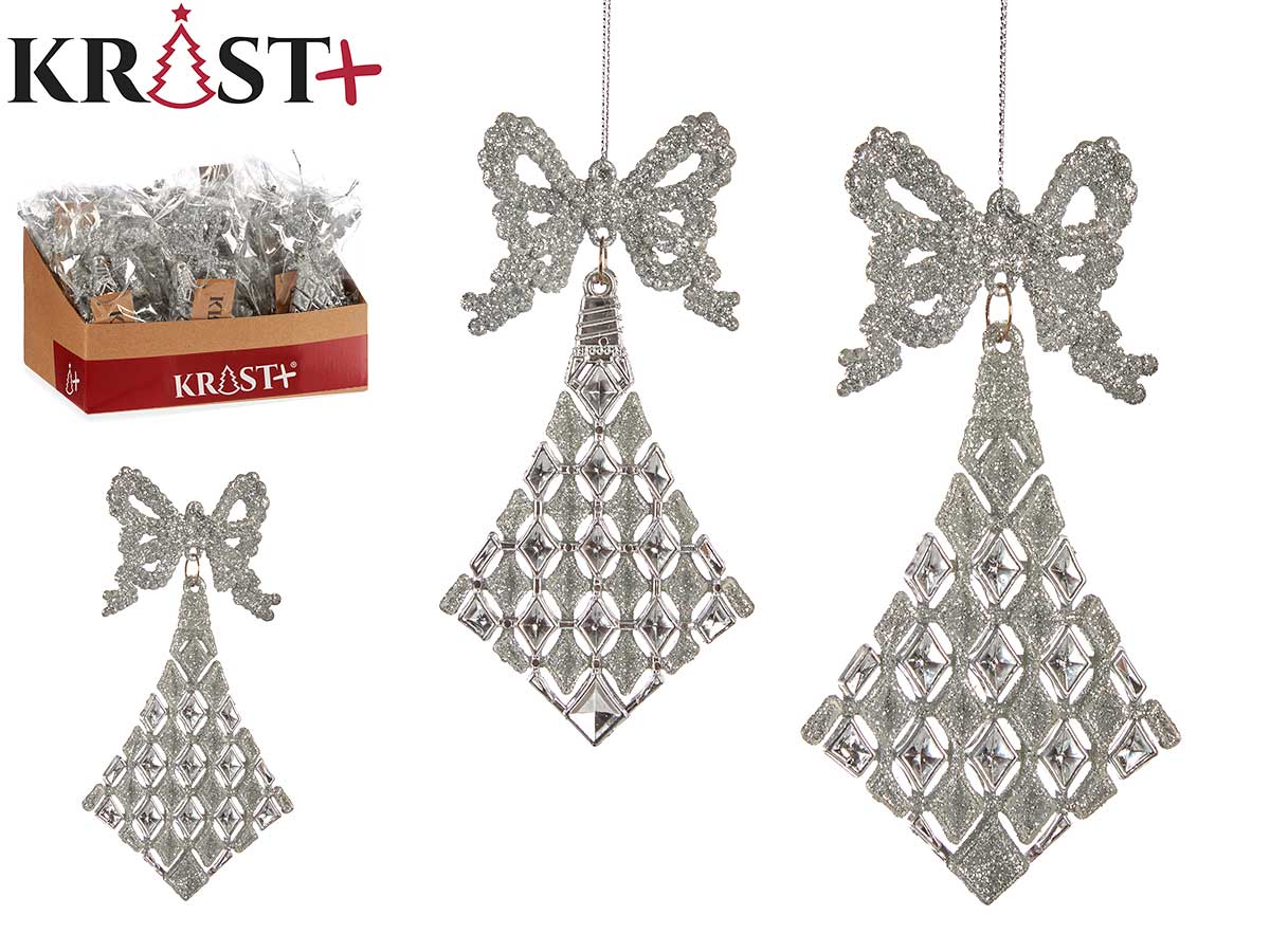 Adorno arbol navidad rombos lazo plateado