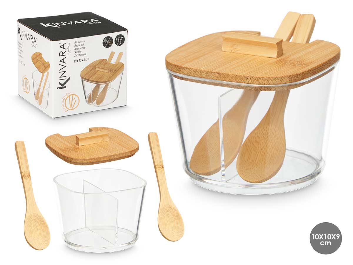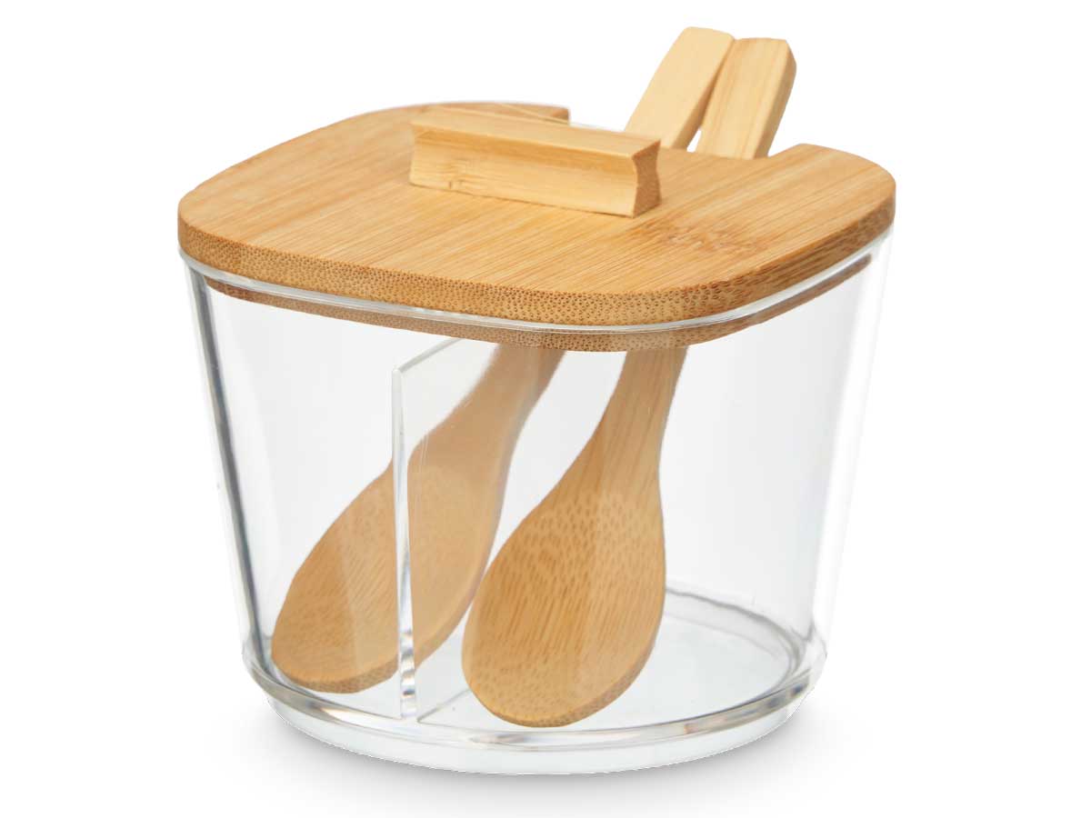 Azucarero doble tapa bambu