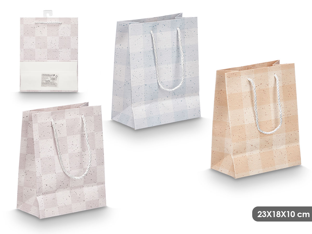 Vendido en cajas de 12 unidadesBolsa asa cuadros surt 3 col 23x18x10cm