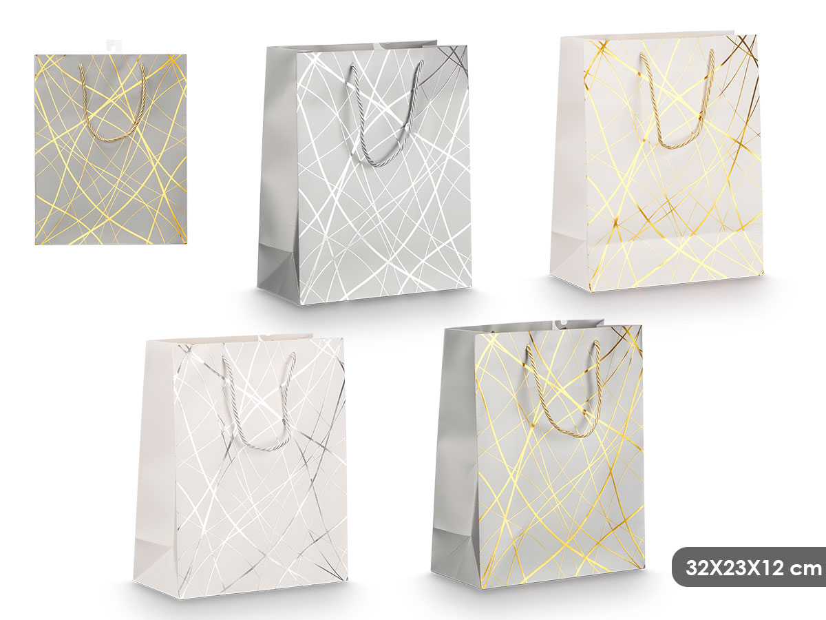 Vendido en cajas de 12 unidadesBolsa asa rayas oro plata 32x26x12cm