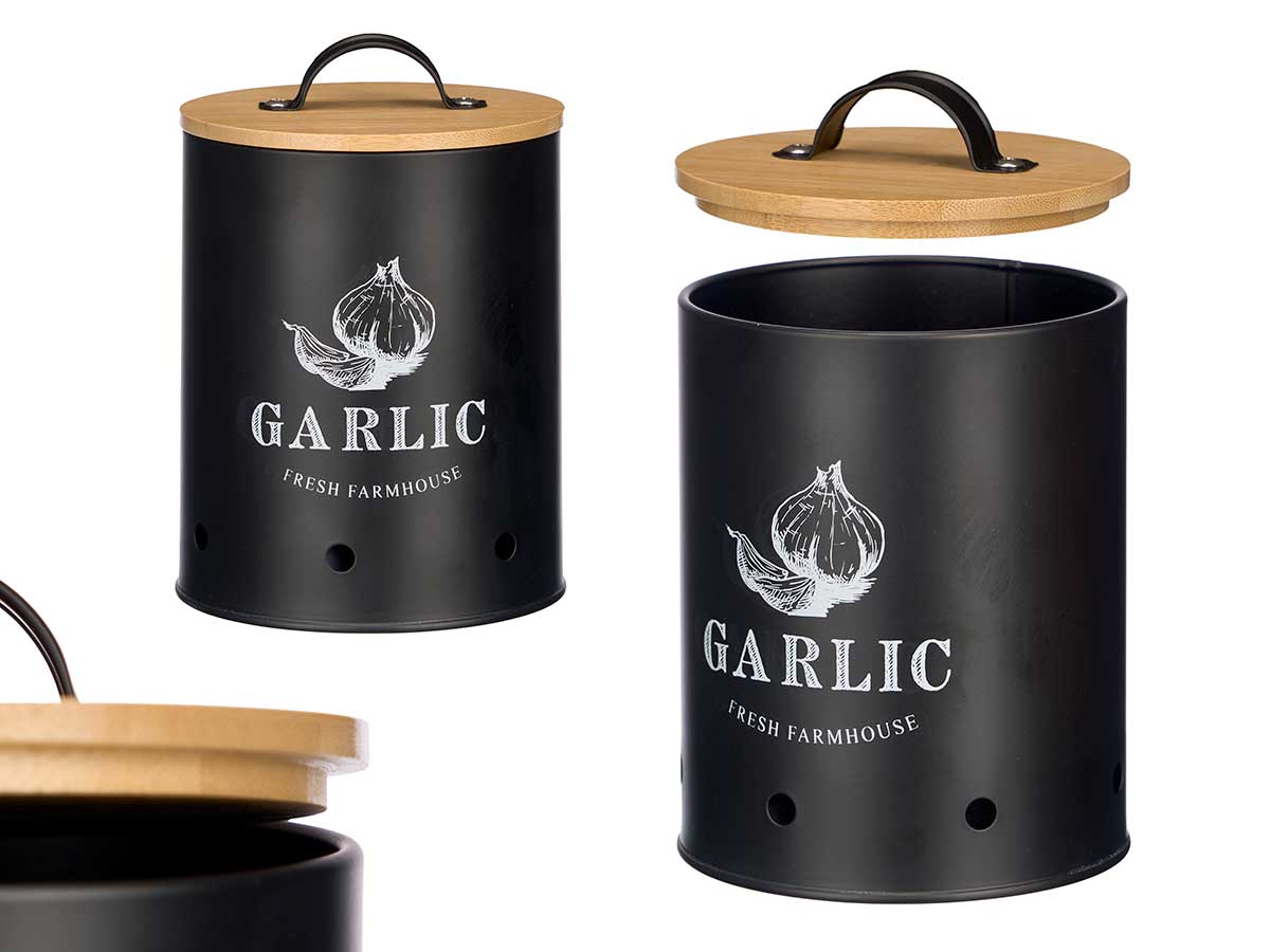 Vendido en cajas de 12 unidadesBote para ajos tapa bambu negro