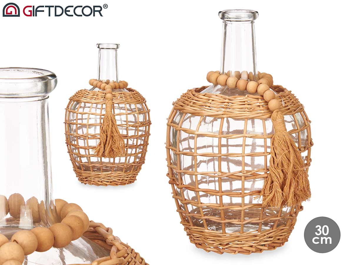 Vendido en cajas de 4 unidadesBotella cristal 30cm mimbre