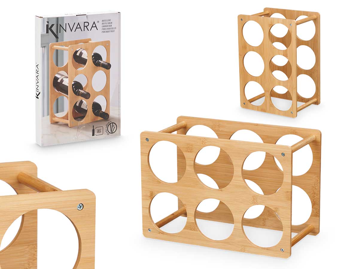 Vendido en cajas de 1 unidadesBotellero 6 botellas bambu