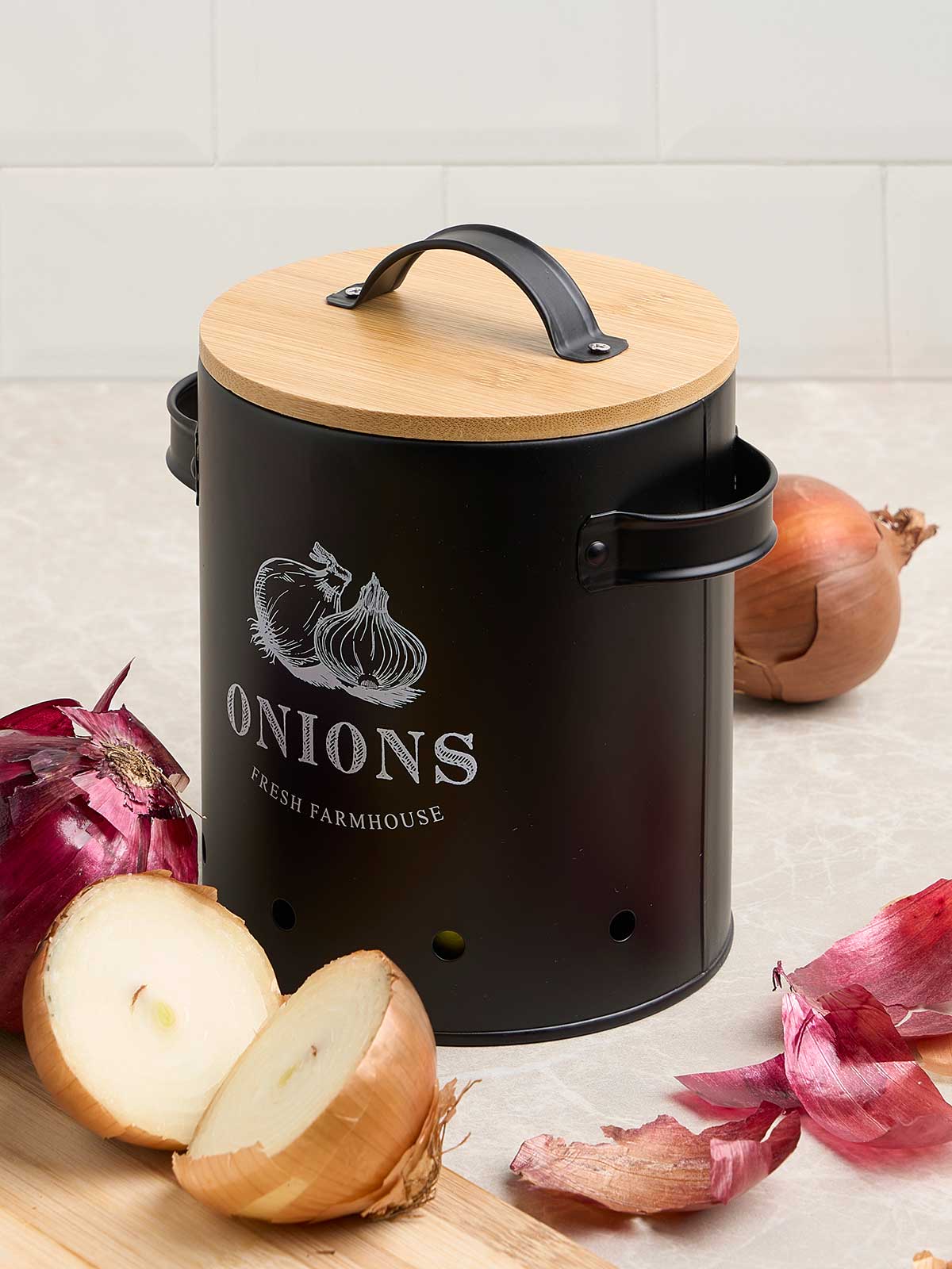 Vendido en cajas de 6 unidadesCebollero tapa bambu negro