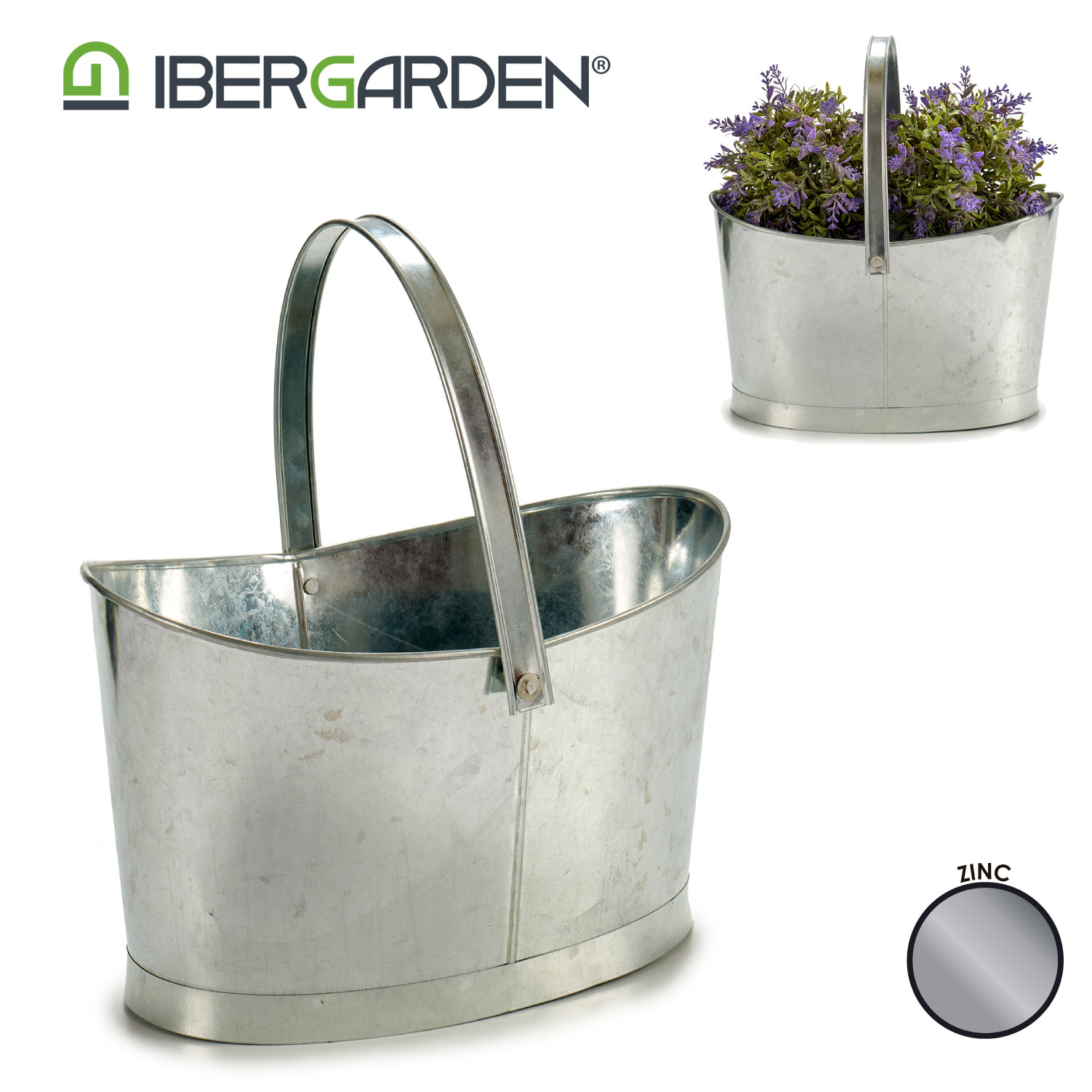 Cesta oval con asa zinc
