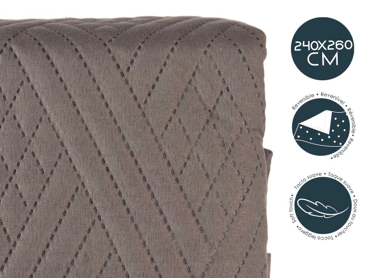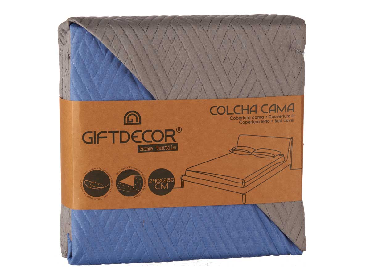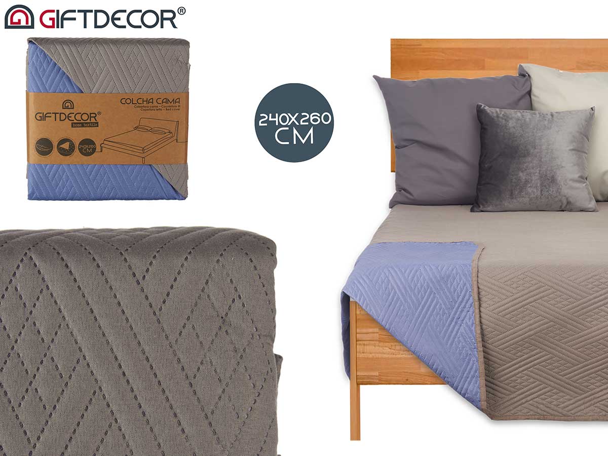 Colcha cama reversible 240×260 gris oscuro y azul