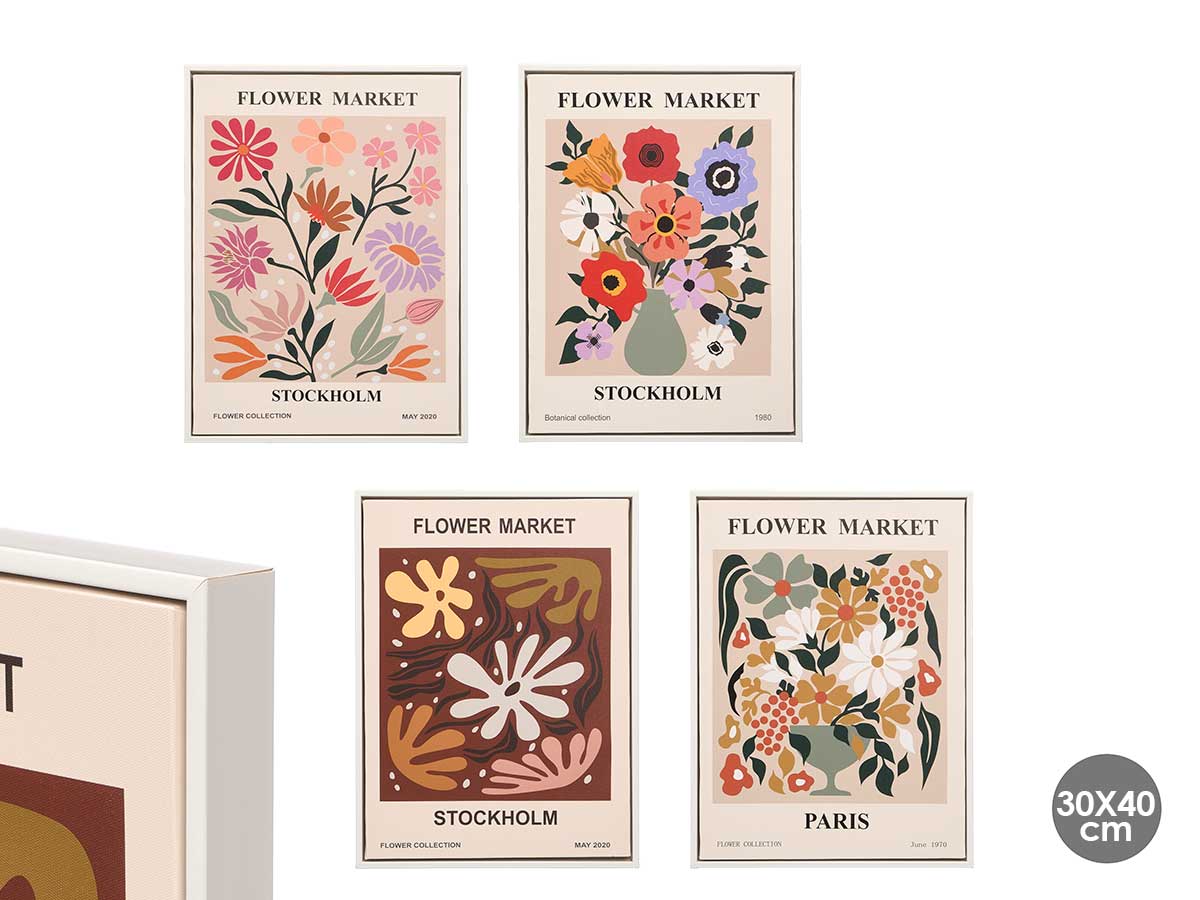 Cuadro flower market surtido 4 30x40cm