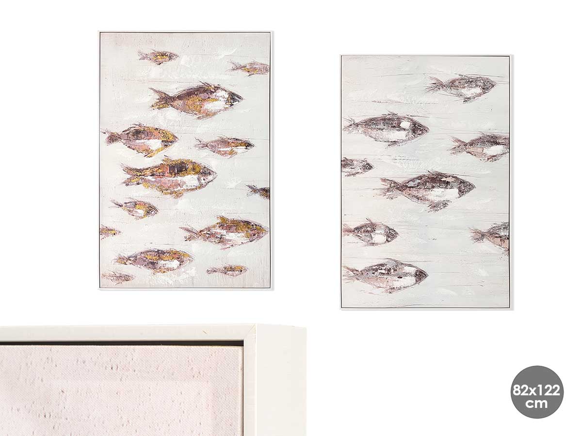 Cuadro lienzo marco blanco pez plata surt 2 82×122