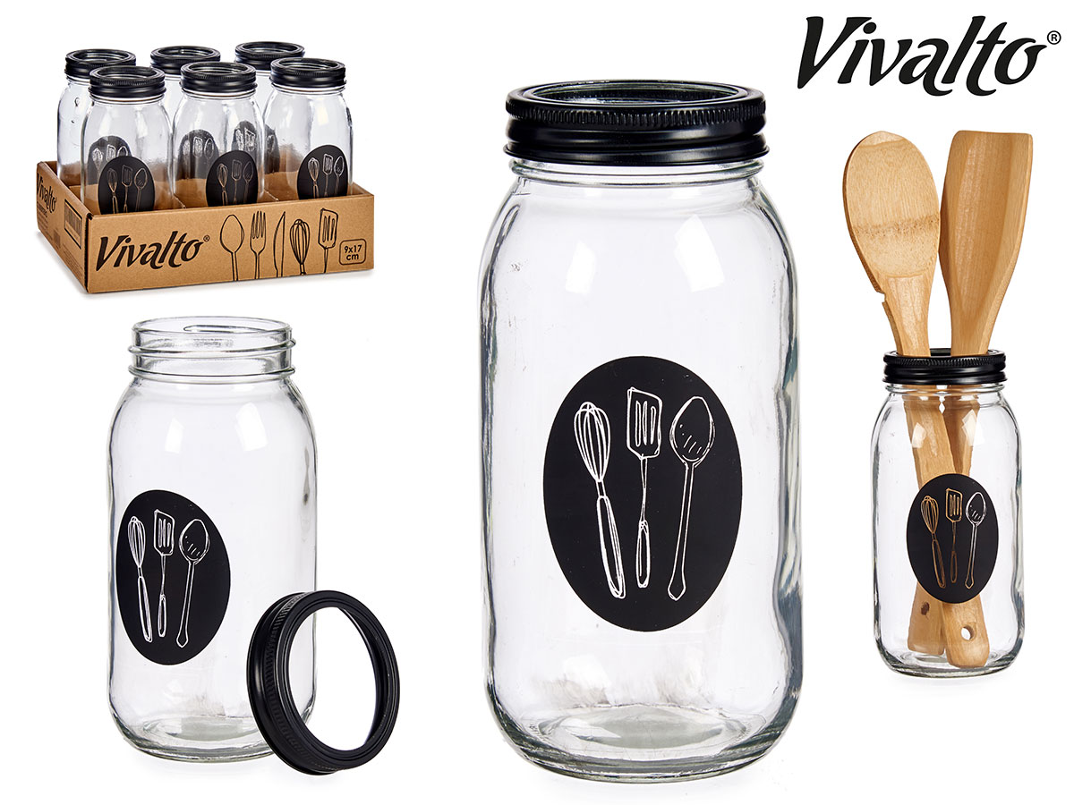 Vendido en cajas de 12 unidadesCubertero vidrio con tapa metal palas