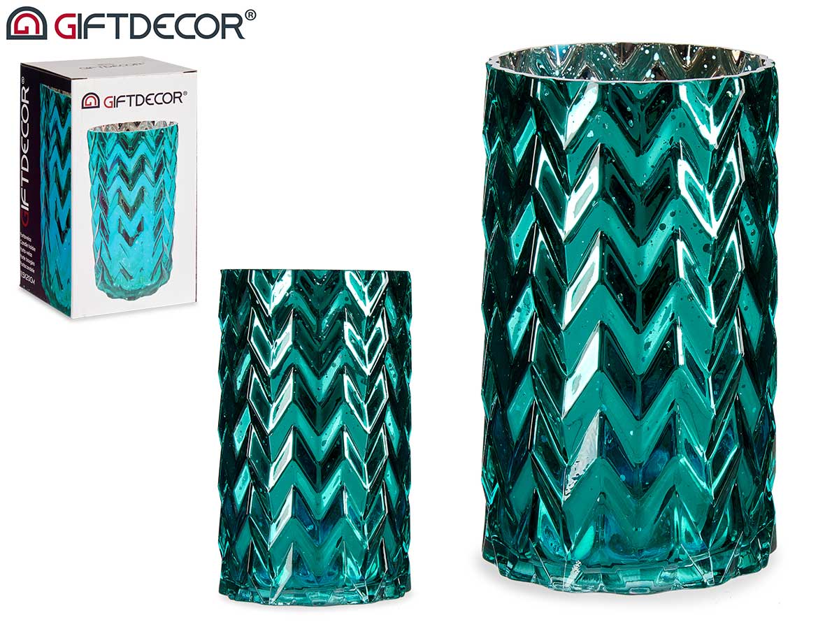 Jarron tallado espiga turquesa
