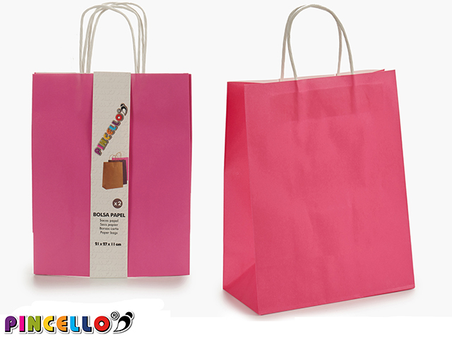 Juego 2 bolsas papel color rosa