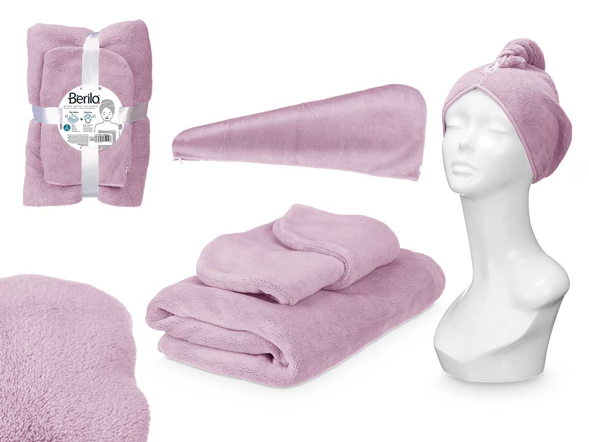 Vendido en cajas de 6 unidadesJuego de toalla con capucha lila claro