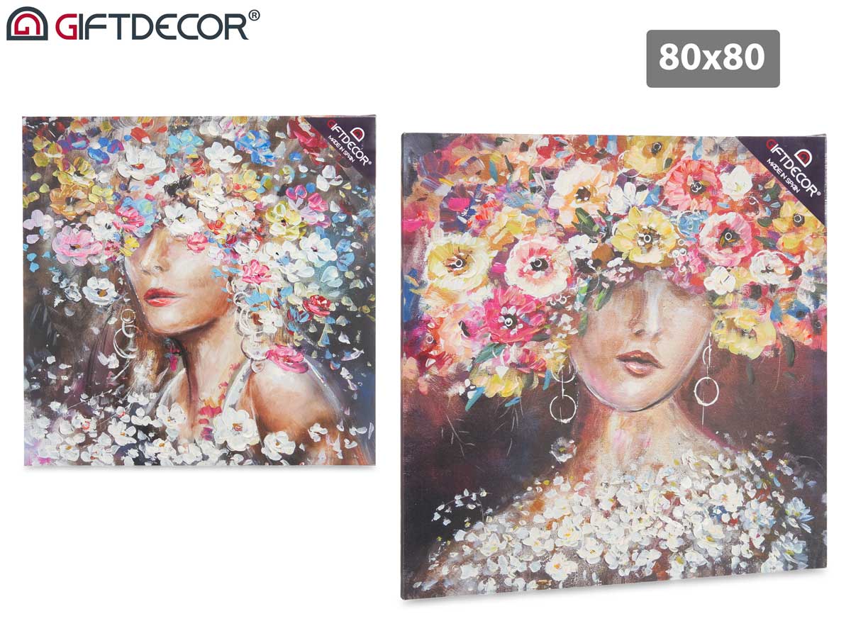 Lienzo pintado mujer corona flores 80x80cm surt 2