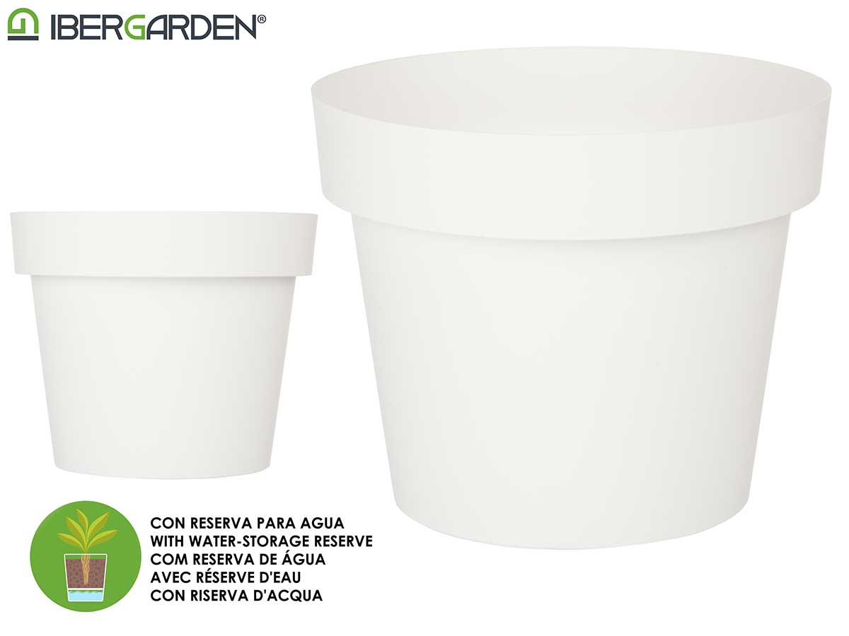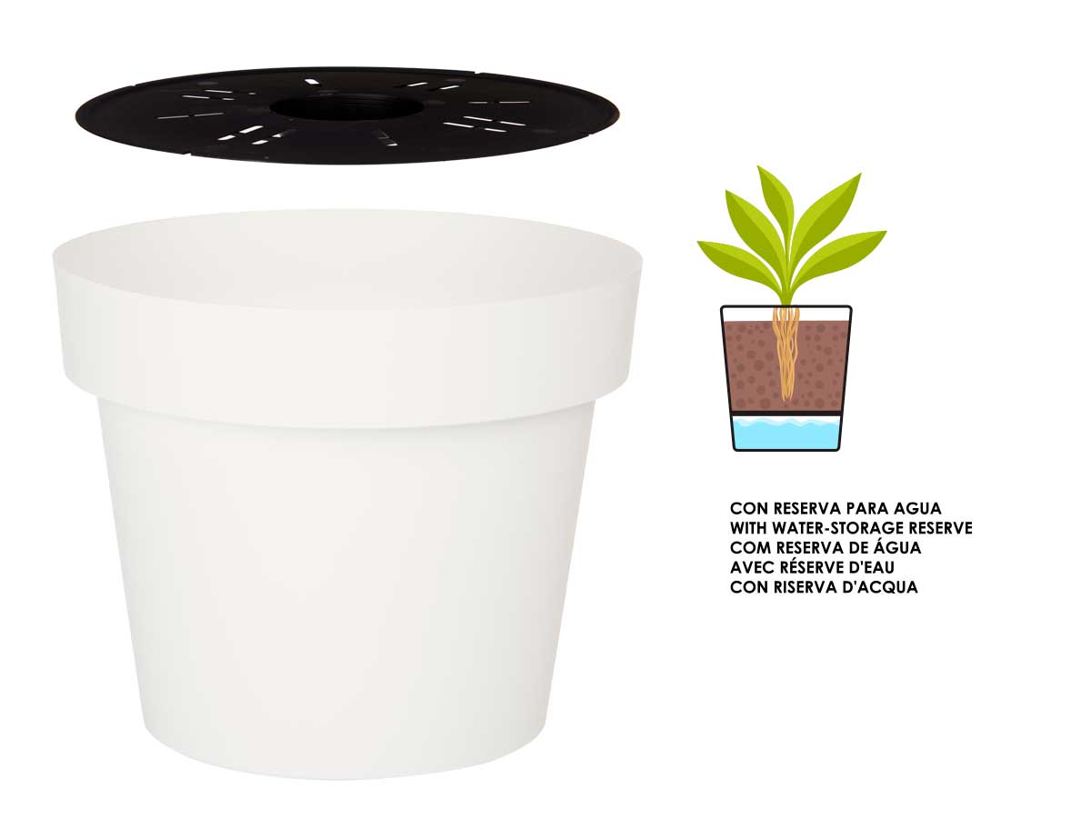 Vendido en cajas de 6 unidadesMaceta plastico blanca con reserva agua 35cm