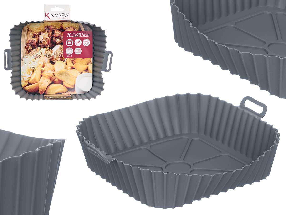 Vendido en cajas de 12 unidadesMolde cuadrado freidora aire silicona gris
