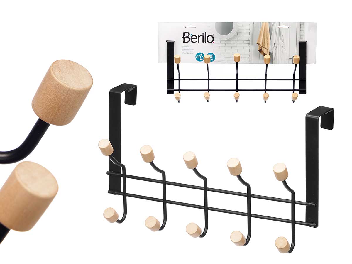 Percha 10 pomos puerta negra