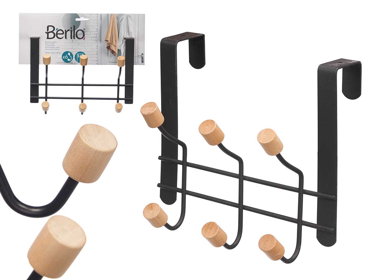 Vendido en cajas de 12 unidadesPercha 6 pomos puerta negra