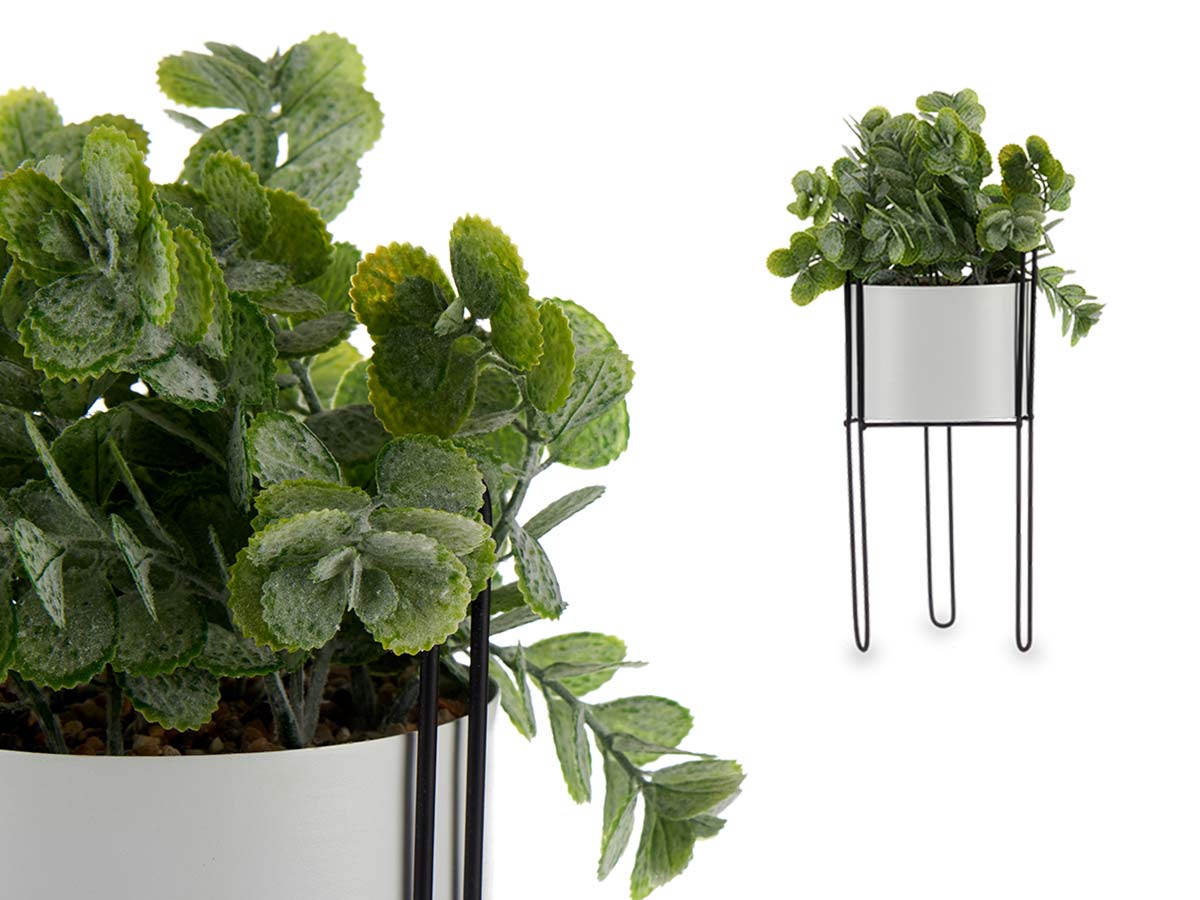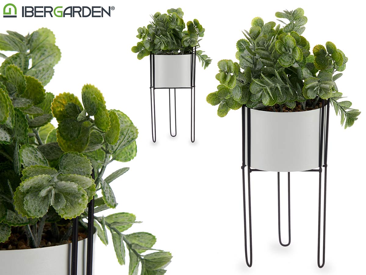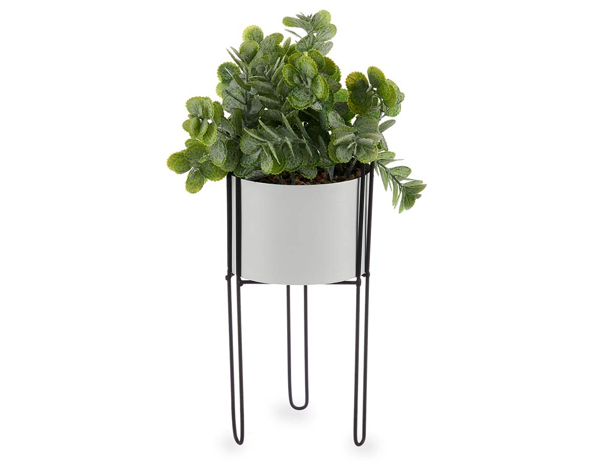 Planta hoja eucalipto base metal blanca