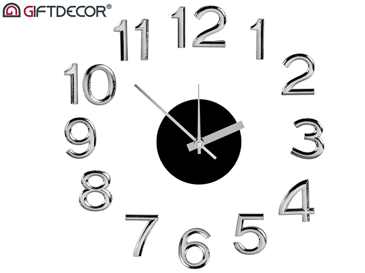 Reloj pared pegatina numeros plateado