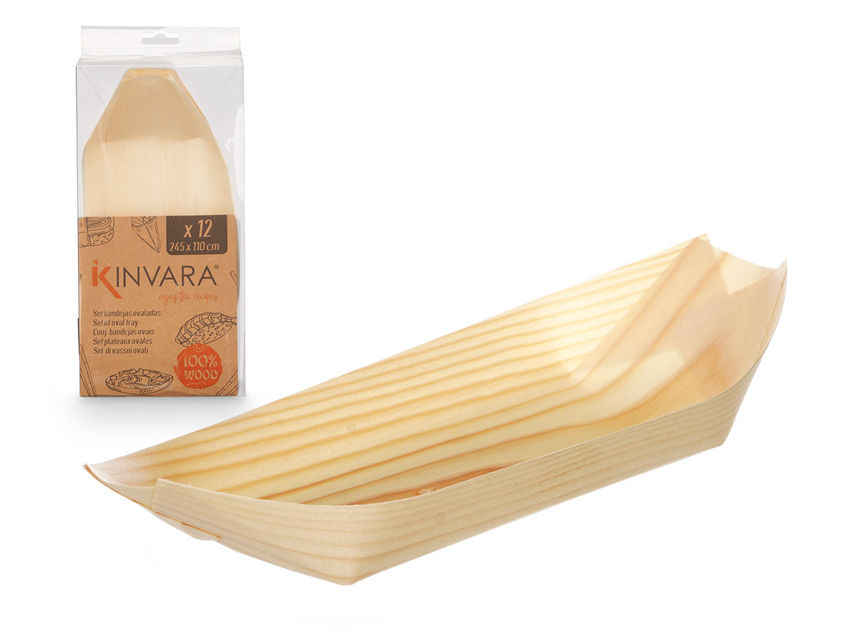 Vendido en cajas de 12 unidadesSet 12 bandejas ovaladas madera grd