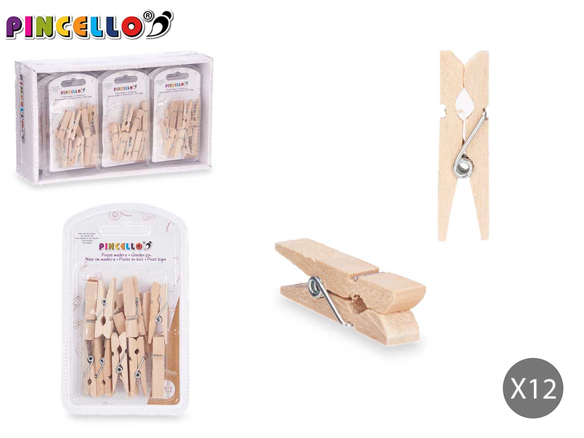 Vendido en cajas de 24 unidadesSet 12 pinzas madera natural med