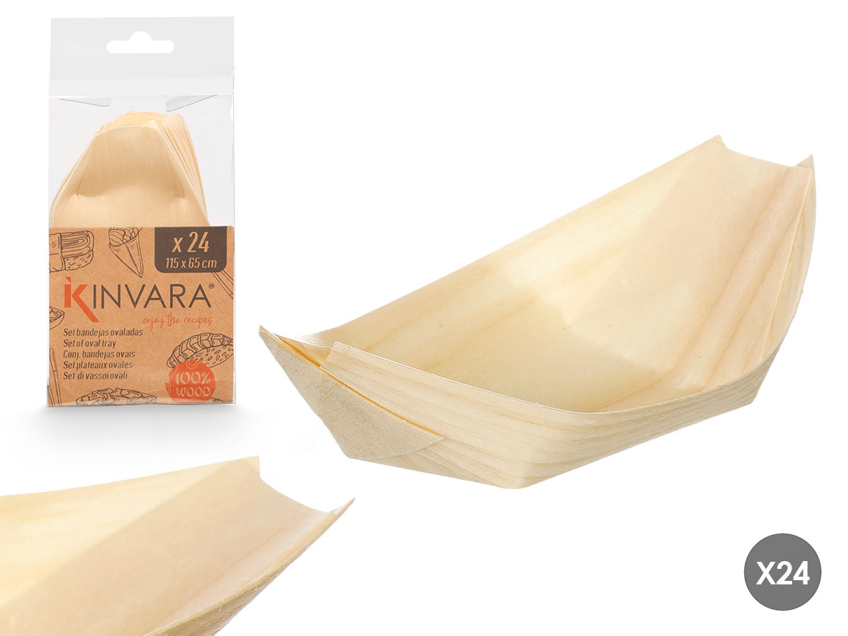 Vendido en cajas de 18 unidadesSet 24 bandejas ovaladas madera mini