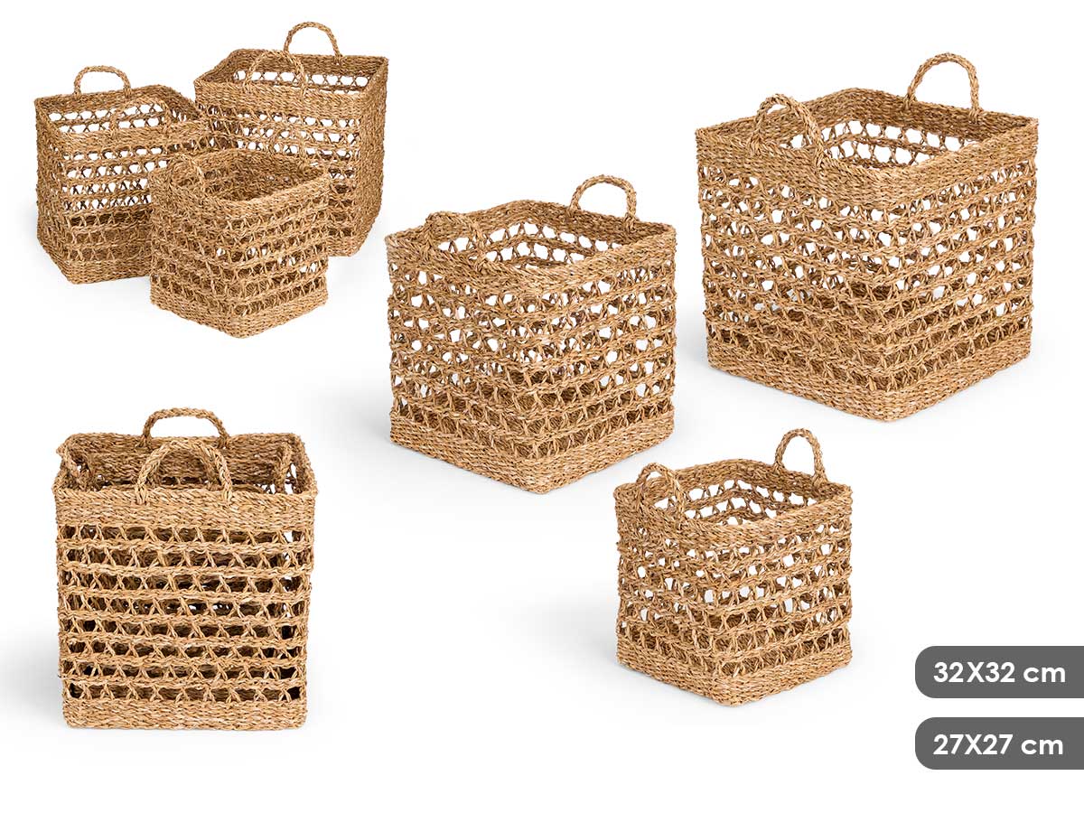 Vendido en cajas de 2 unidadesSet 3 cestos cuadrados calados 37x37cm
