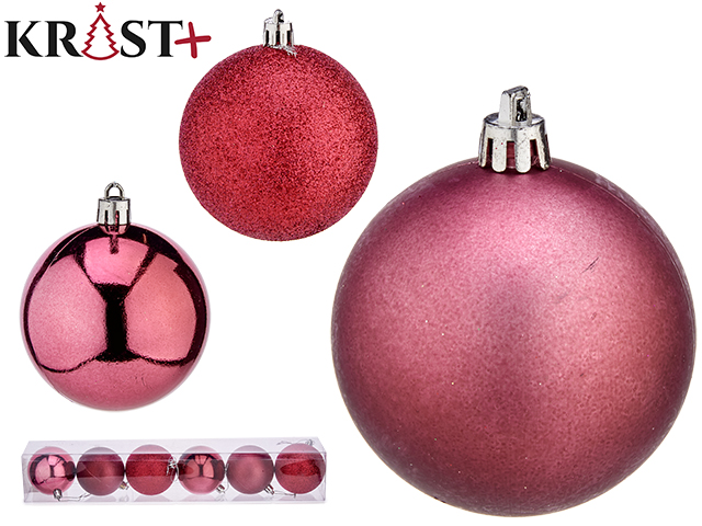 Vendido en cajas de 12 unidadesSet 6 bolas navidad col rosa oscuro 7 cm surt