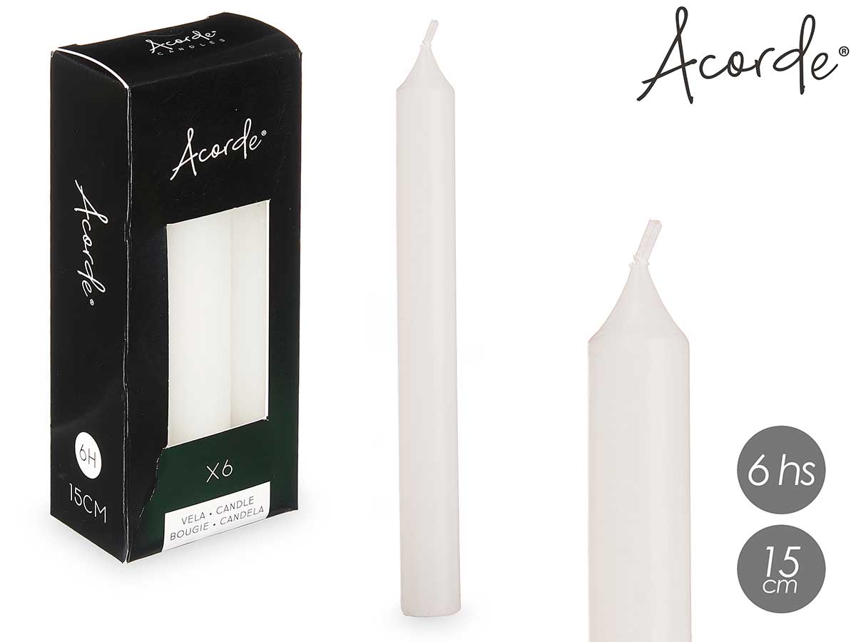 Set 6 cirios blanco 15 cm 6 horas