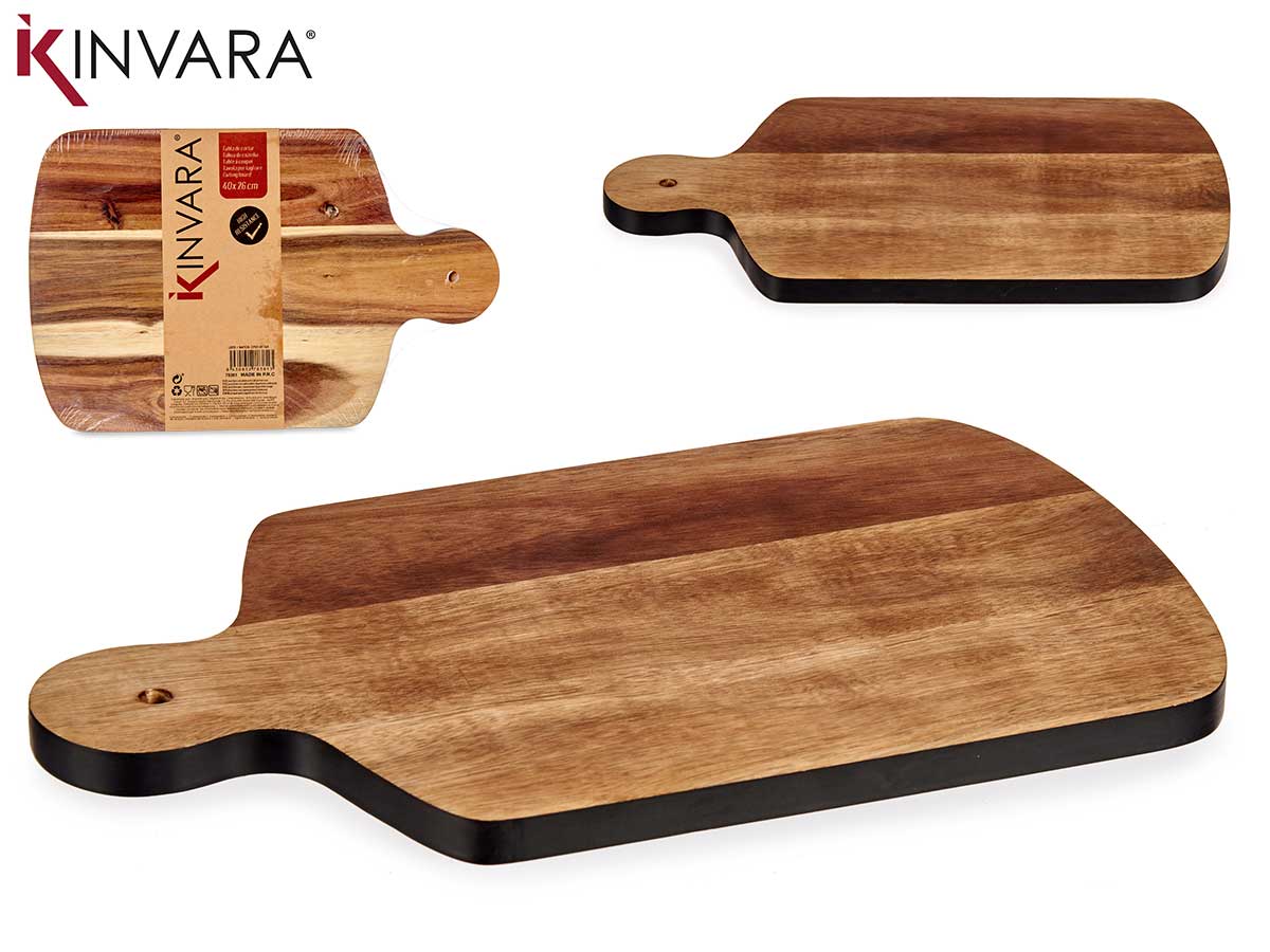 Tabla cortar madera con borde negro 40cm