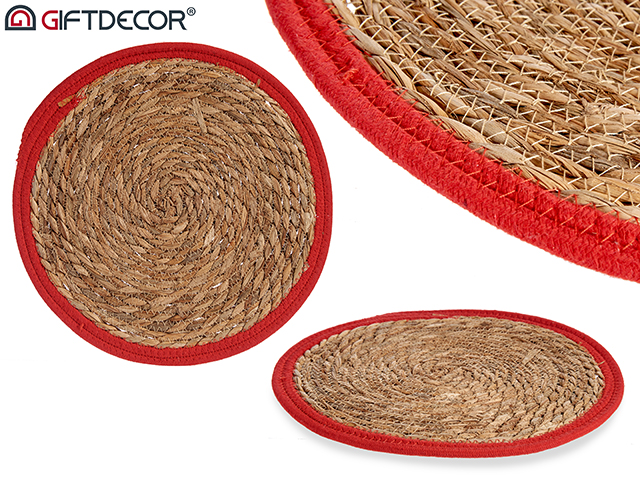Vendido en cajas de 48 unidadesTapete natural borde rojo 35cm