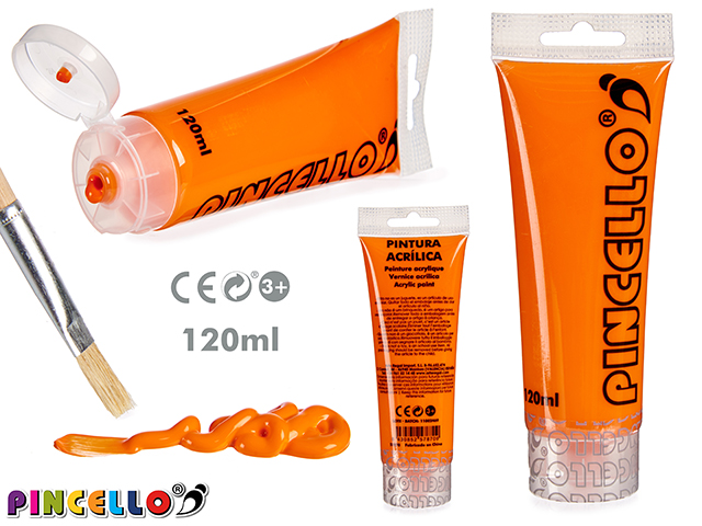 Tubo pintura acrilica 120ml naranja