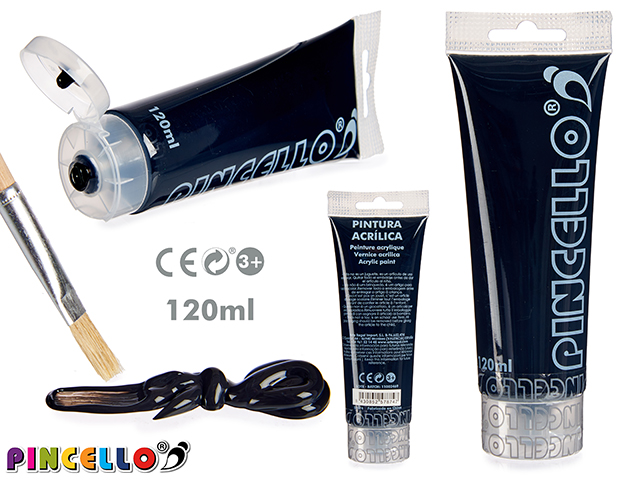 Vendido en cajas de 12 unidadesTubo pintura acrilica 120ml negro