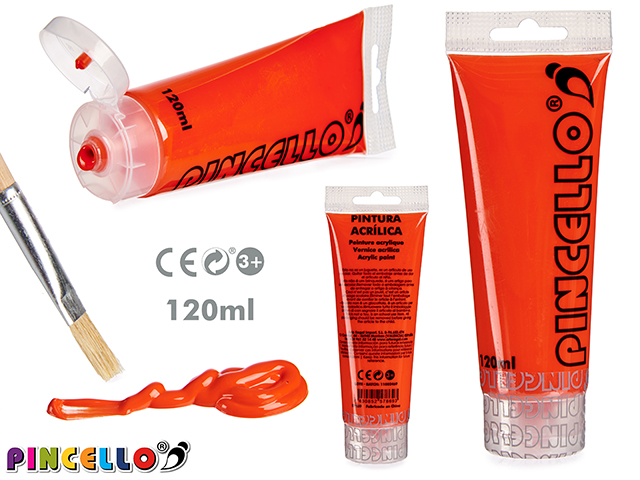 Vendido en cajas de 12 unidadesTubo pintura acrilica 120ml rojo