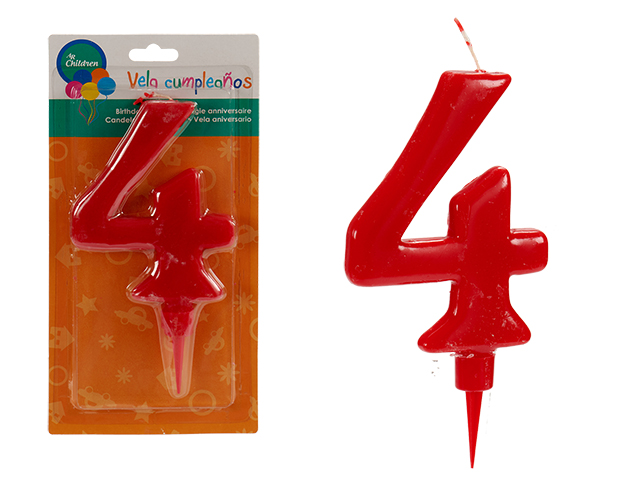 Vela cumpleaños 4 roja grande