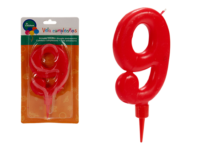 Vela cumpleaños 9 roja grande