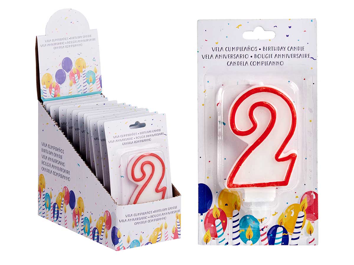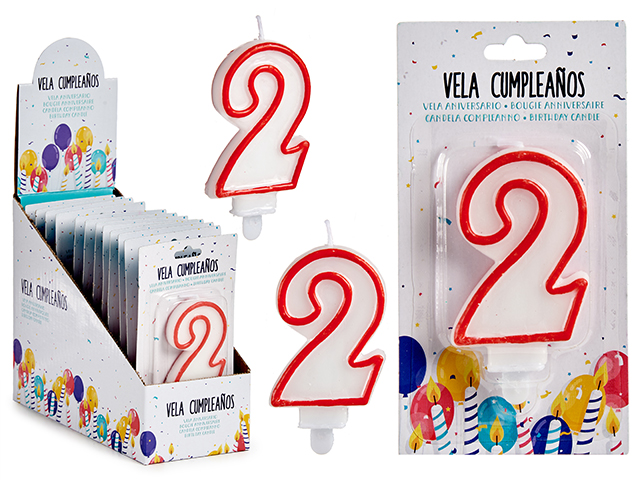 Vela cumpleaños num 2 blanca borde rojo
