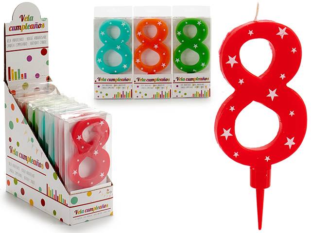 Vela cumpleaños numeros gr 8 surt 4 col