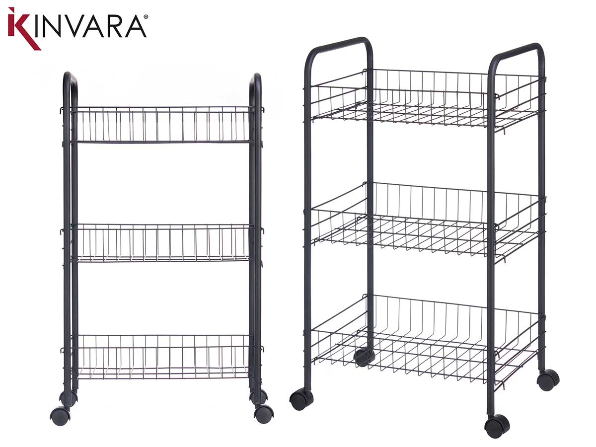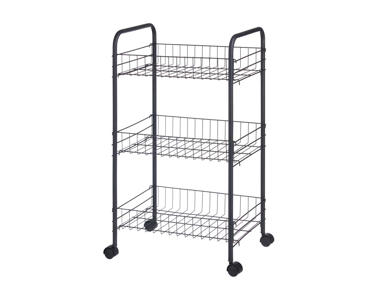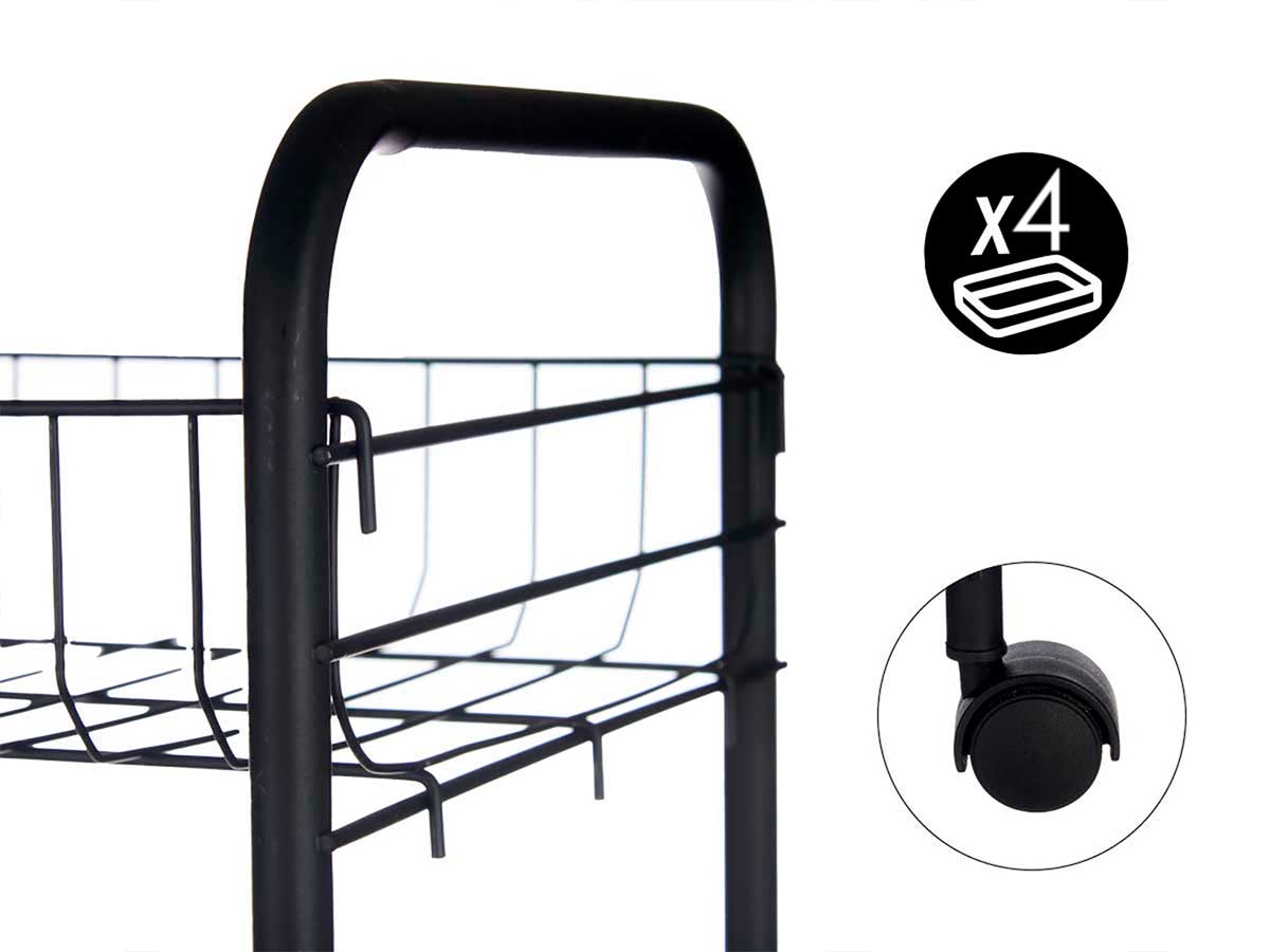 Vendido en cajas de 4 unidadesVerdulero 3 pisos metalico negro ruedas