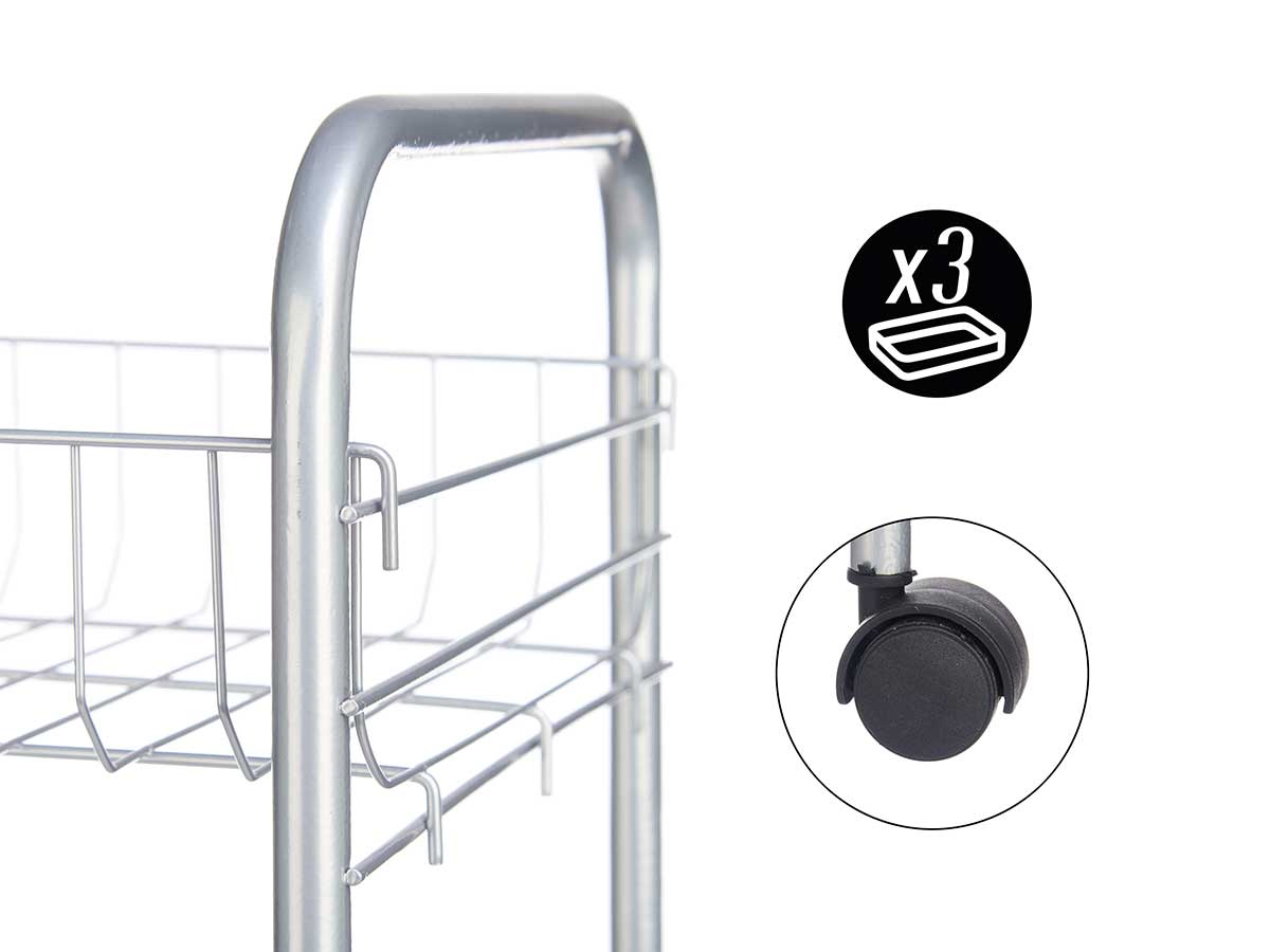 Vendido en cajas de 4 unidadesVerdulero 3 pisos metalico ruedas